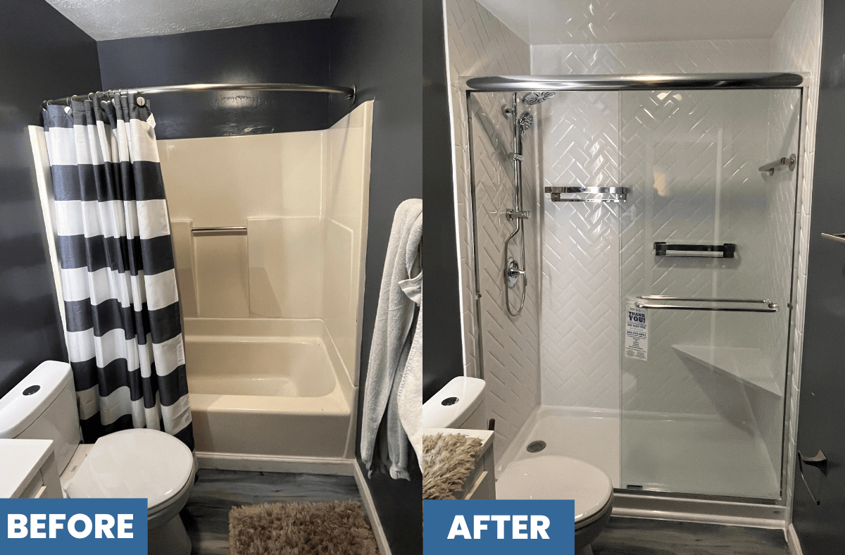 *With purchase of any complete bath or shower system. Not valid with other offers or prior purchases. Offer good during initial consultation only. 50% off installation is equivalent to 10% off the entire project. Financing is provided by third-party lenders under terms arranged by customer and lender, subject to credit requirements. Not all buyers may qualify. Most shower remodels can be done in one day, but there are a few cases in which additional time may be needed.